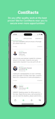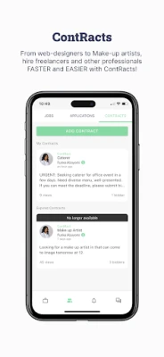 CONTRACTS Professionals and Businesses can now post and bid for service requests called ContRacts. Post a ContRact for any and every service under the sun; from photographers, to carpenters, to make-up artists. Service providers can stay up to date with notifications for ContRacts in their area!