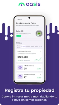 Con Oasis App puedes generar ingresos constantes al alquilarlo de manera sencilla y segura.