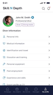 • Build Digital Profiles: Divers can digitize their entire career history - from training certificates and medicals to dive logs and project experience.