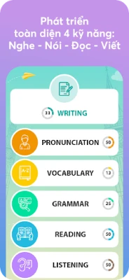 - Phát triển toàn diện 4 kỹ năng: Nghe - Nói - Đọc - Viết