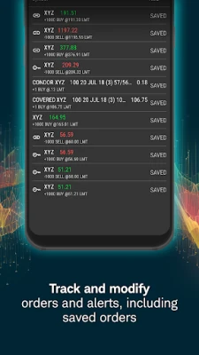 • Track and modify your watchlists, orders, and alerts, including saved orders.